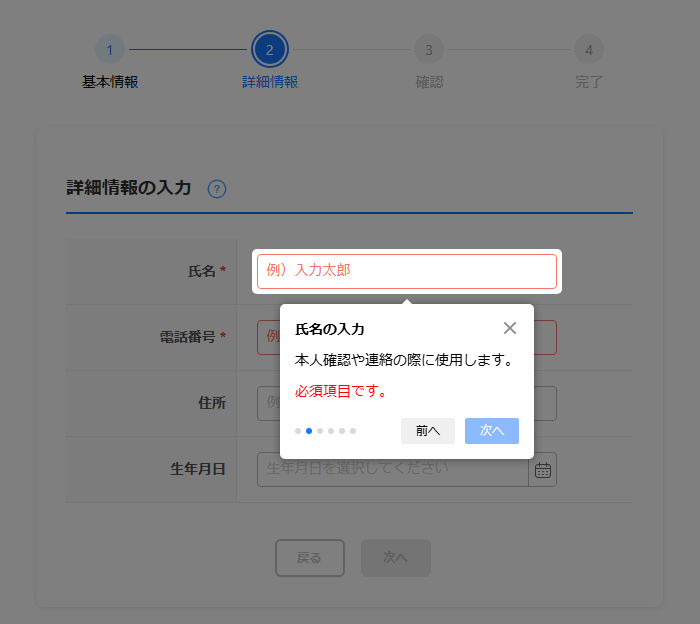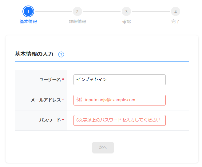 InputManJSのステッパーコンポーネントとツアーコンポーネントを組み合わせて、会員登録ページを実装する方法を紹介します。